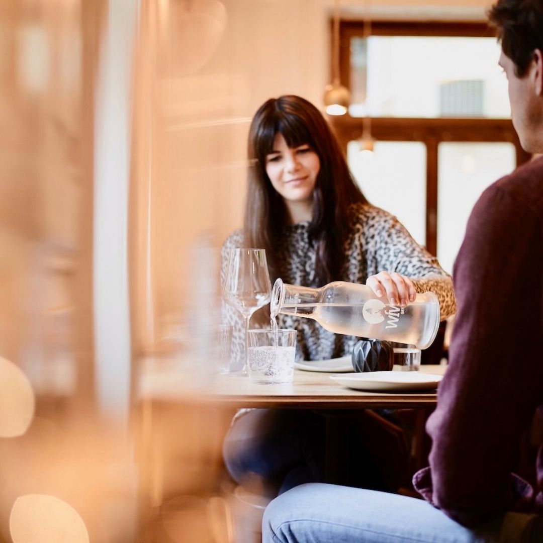 Drinking tap water saves up to 1,500 times more CO₂ compared to bottled water. With WASSER FÜR WASSER, we support global projects: drinking water systems in Zambia, sanitation facilities in Mozambique, and awareness campaigns in Switzerland.